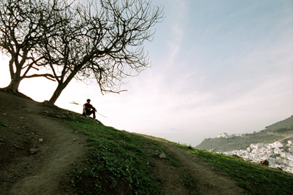 I hiked with Aziz up the mountain behind his house, to the ruined building known as the Spanish Mosque. He pointed out that although the building’s tower is like a mosque, the floor plan of the building is too small for a mosque. Besides, it is divided into three small rooms, rather than one large area as one would expect. In any case, the setting is magnificent, on a high ridge overlooking the town, with an enormous, gnarled old tree growing just outside.